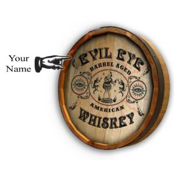 Personalize this 19" quarter barrel sign with the name of your choice. Replace "Evil Eye" with your personalized text. Made in the US to last, this is the perfect addition to your space. Get yours now - free shipping included!
