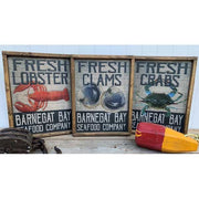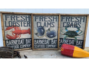 Seafood Company | Set of 3 | Lobster | Crabs | Clams | Wood Signs | Rustic Frame