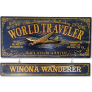 World Traveler Novelty Sign | 3D Relief of Airplane | Personalize with a Nameplate