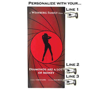 "Diamonds Are A Lot Of Money" - Fun take on a classic movie poster. Perfect décor for your home theater instead of a run-of-the-mill movie poster. Handcrafted of furniture grade wood planks and professionally printed using proprietary Poly-Arch Lithography. Each sign art piece is individually made upon order. This sign can be personalized with the text of your choice (Movie title limited to 28 characters). Hanging hardware is included for mounting. Size: 23.75"x11"x1". Made in the USA.