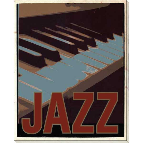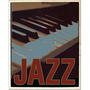 "JAZZ" with piano keys. Wrapped canvas wall art print. Made in the USA.