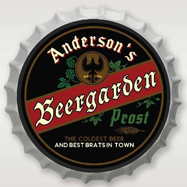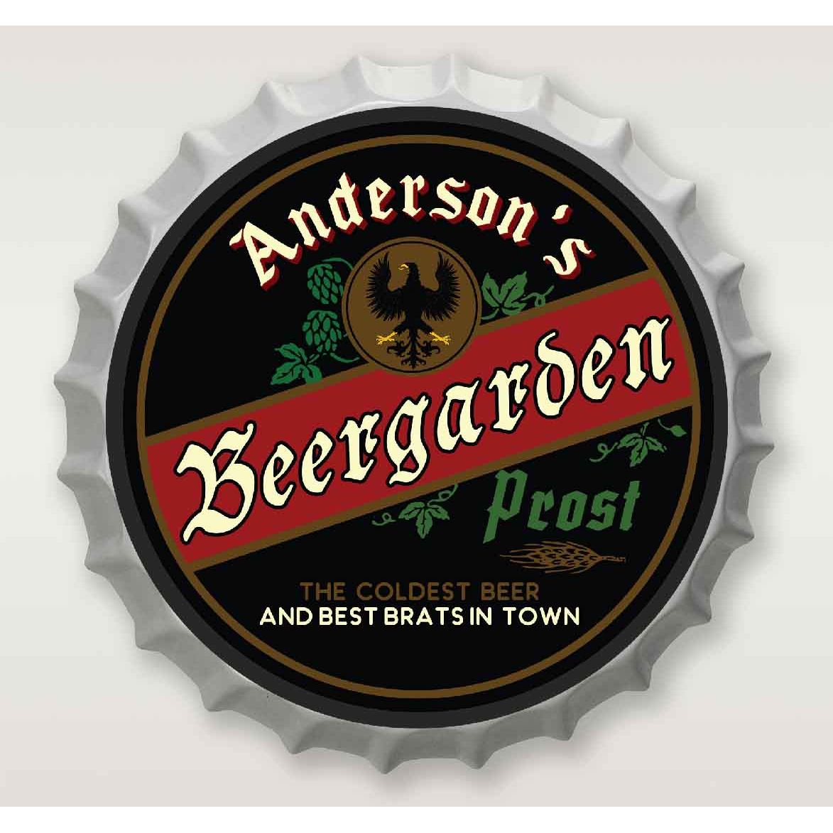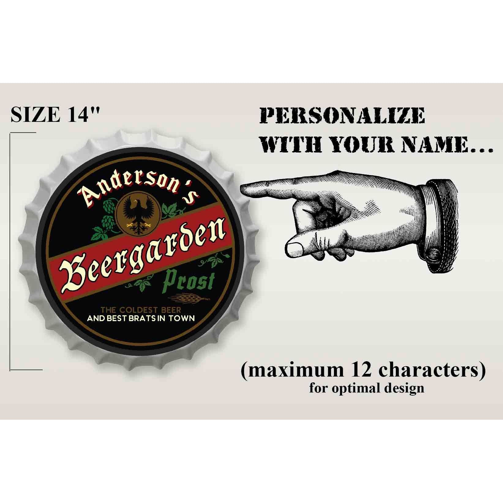 Beer Garden | Bottle Cap | Customizable | Prost | Round | 14 Inch | Metal Sign