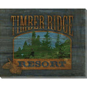 Discover the distinct atmosphere of a celebrated mountain resort with this vintage-style canvas print of a Timber Ridge Resort sign. Its weathered and worn look adds to the charm, combined with the dense forest for a truly authentic western feel! Capture the spirit of the great outdoors with this enchanting and unique wall art.