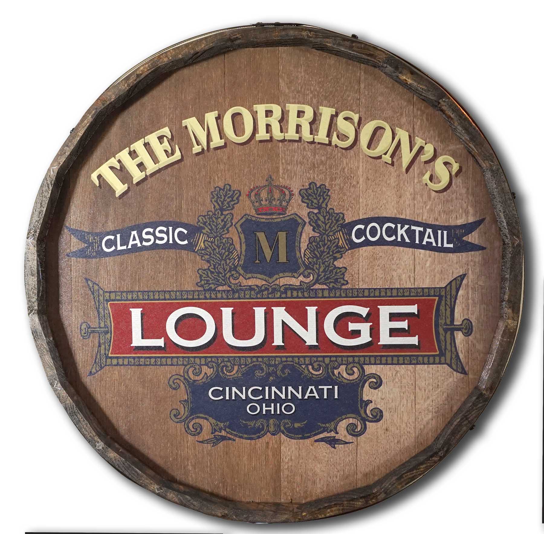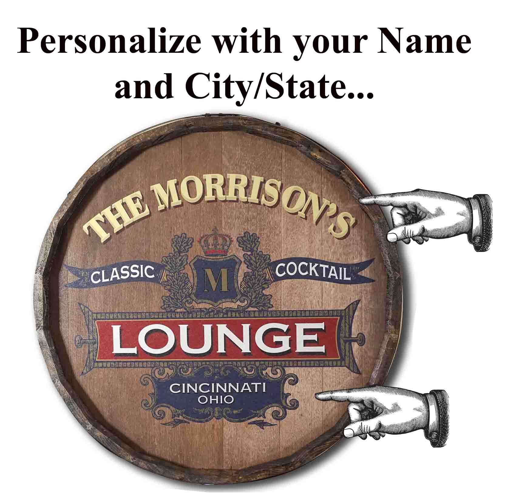 Cocktail Lounge | Barrel Sign | Customize Family Name and Location