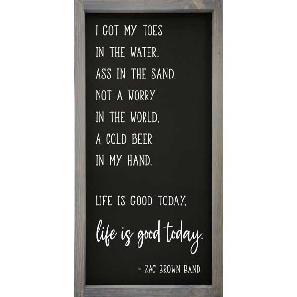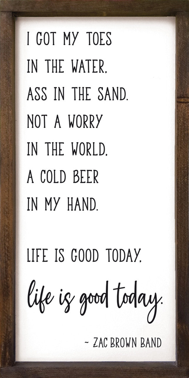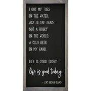 Toes in the Water | Life Is Good | Zac Brown | Wood Sign | Framed | 24" x 12"